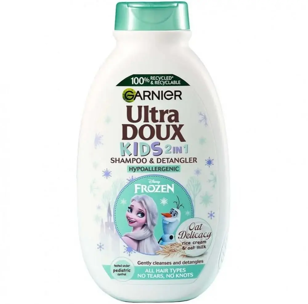 "ودك لطفلك شامبو وبلسم في نفس الوقت؟ شامبو جارنيه ألترا دوكس بالشوفان ينظّف بلطافة، يفك التشابك، ويخلّي شعره ناعم وكأنه توه طالع من صالون أطفال 👌 بدون دموع وريحة تهبل!"