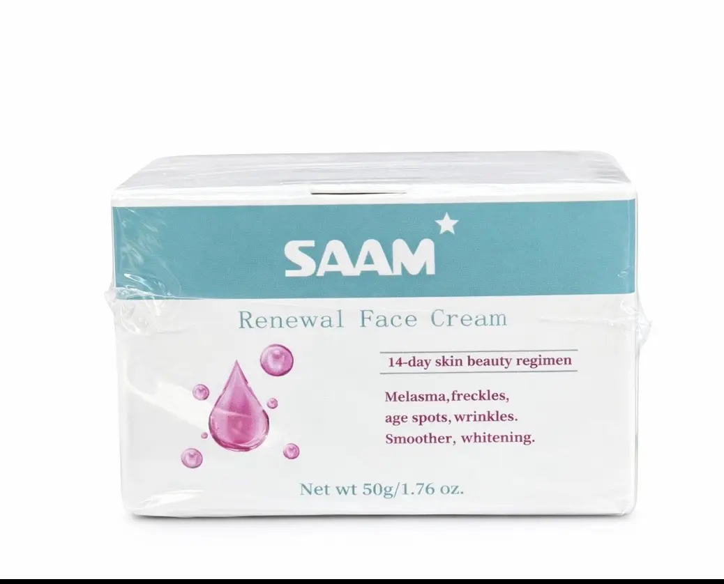 كريم SAAM Renewal Face Cream هو كريم عناية بالبشرة مصمم للمساعدة في تحسين مظهر الجلد وتوحيد لونه. يعمل على تقليل ظهور الكلف، النمش، والبقع الداكنة، كما يساعد على تنعيم البشرة ومنحها مظهراً أكثر إشراقاً ونضارة.