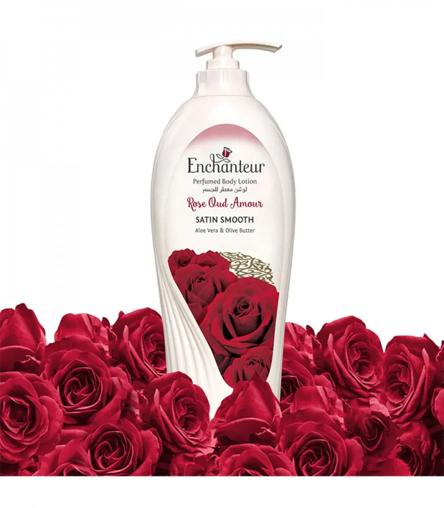 دلّلي حواسك مع لوشن Enchanteur Amour Rose Oud المعطر، المصمم خصيصًا ليجمع بين نعومة الترطيب وسحر العطور الشرقية.